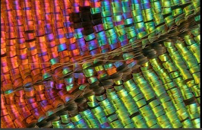 Wing scales of a Urania ripheus (Sunset Moth) (6.25x) Reflected-light microscopy